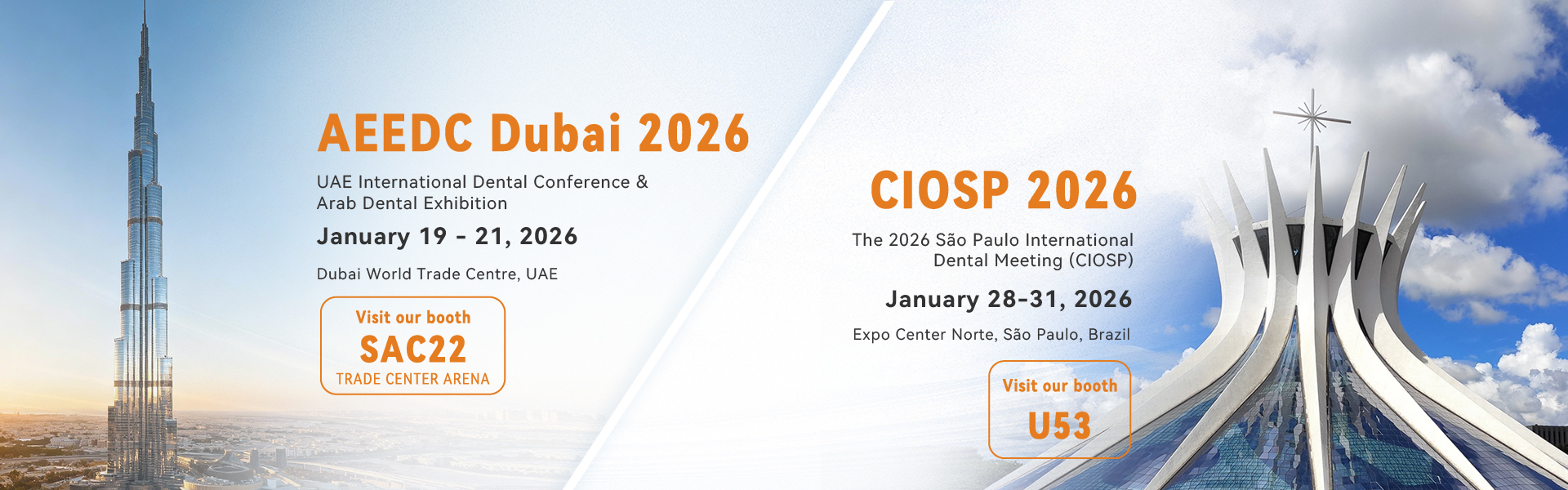 Audental, Ocak 2026'da iki önde gelen uluslararası dişçilik fuarına katılımını duyurmaktan memnuniyet duyar — AEEDC Dubai ve CIOSP São Paulo.